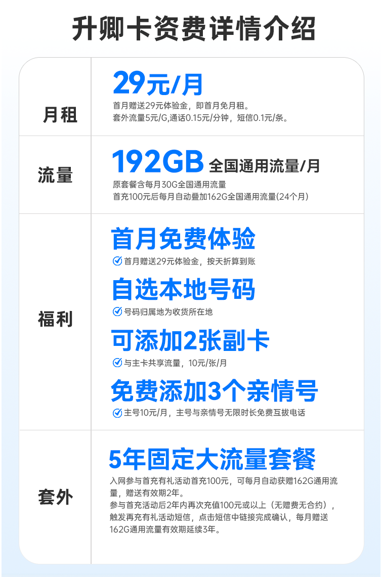 与网上纯流量卡相比,运营商官方推出的流量卡具有更高的可靠性和性价比。以下是推荐的一种官方大流量卡: